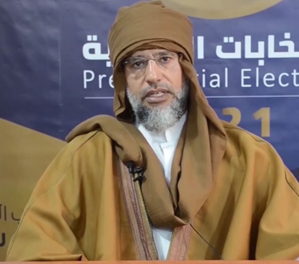 When Haftar’s 2019-2020 goal of capturing western Libya was shattered, the United Nations Special Mission to Libya brokered peace talks which birthed Libya’s second UN-parachuted government, Government of National Unity (GNU). The mandate of the government was only nine months, with the goal of writing presidential and parliamentary election laws and holding elections by the 24th of December 2021. Given that this was the first opportunity for Saif to engage in politics peacefully, he appeared in a New York Times interview in the summer of 2021, officiating his intent to run for the December elections.[3]