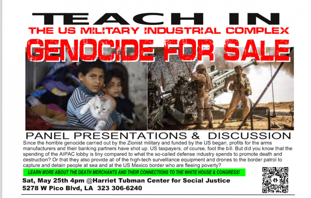 LOS ANGELES TEACH-IN MAY 25: The U.S. Military Industrial Complex/Death Merchants – Genocide for Sale