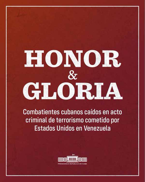 Speech delivered by Miguel Mario Díaz-Canel Bermúdez, First Secretary of the Central Committee of the Communist Party of Cuba and President of the Republic, at the event condemning the military aggression against the Bolivarian Republic of Venezuela and expressing support for its legitimate president, Nicolás Maduro Moros, and the Popular, Military, and Police Unity, held at the José Martí Anti-Imperialist Tribune, on January 3, 2026, “Year of the Centenary of Commander-in-Chief Fidel Castro Ruz”